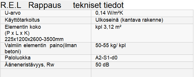 Kun rakennuksen julkisivut ovat rappausta, ulkopinnalle laitetaan rappauslevy. Ulkopuolelta saumojen kittaus ja ohut rappaus riittää saamaan paneelit loistavan näköisiksi. Sisäpinta normaalikipsilevyä, tai EK-kipsilevyä . Pystytysaikana käytetään lauta/pattinkia, tai holvitukia. Elementit ovat kevyitä, eikä tarvitse nostureita pystytykseen, siihen riittää kaksi työmiestä työstämään niitä helposti. Haluttaessa löytyy eritavoin kuvioituja sementti pohjaisia pintoja esim. sisutukseen.