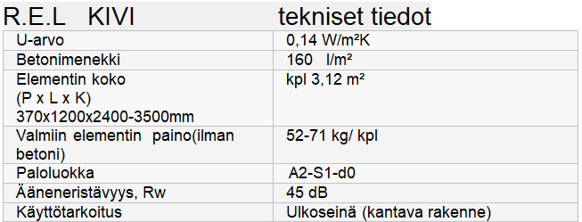 Yrityksen ainutlaatuineen oma kehittämä malli, joka löytyy markkinoilta ainoastaan meiltä. Elementti on alustavasti R.E.L elementit ominaisuudella, mutta elementin kantavana materiaalina käytetään betonia, elikkä elementit tulevat työmaalle kokonaisina paneeleina ja pystytetään paikanpäällä. Rakennesuunnittelijan määräyksen mukaan raudoitetaan paneelit ja tehdään betoni valu. Paneelit ovat kevyitä eikä tarvitse raskaita nostureita pystytykseen, siihen riittää kaksi työmiestä työstämään niitä helposti. Pystytys aikana käytetään pattinkia tai holvitukija joita käytetään myös valujen aikana, tuetut seinät voidaan valaa kokonaan kerrallaan. Elementin etuja ovat: Helppo pystyttää, helppo työstää, hyvä rapattavaksi ulkopuolelta (voidaan tehdä sementtipohjainen levy ulkopinnalle) Vaihtoehto 2, voidaan jättää paljas eps pinta johon voi tehdä rappauksen, Jos julkisivu vaatii puuta niin elementtiin tulee valmiiksi osb tai vaneri, johon voi asentaa rimat ja siihen julkisivu laudat Ulkoseinillä olevat pistorasijat ja katkaisijat voidaan tehdä ennen betoni valuja. Sisäpuolen pintaan tulee joko kipsilevy tai ek kipsilevy. Ikkunat asennetaan valujen jälkeen